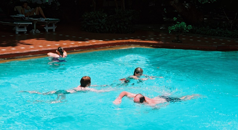 Svalkande bad i poolen på Alit’s bungalows