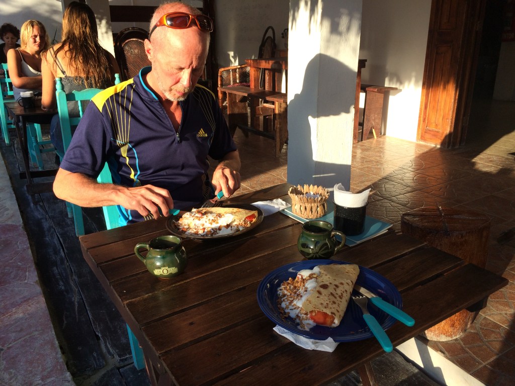 Efter stormen var dagarna härligt soliga och sköna. Vi hyrde cyklar som vi trampade runt med på ön. Hittade ett bra frukostställe på promenadavstånd från hotellet, där vi upptäckte en något annorlunda, men god frukostkombination: färska frukter, yoghurt och müsli inlindat i crepes. Smarrigt värre. Den längtade man till varje morgon. Till lunch blev det som oftast härliga tacos och en öl på stället intill vårt hotell på stranden. Och på kvällen testade vi olika restauranger i samhället och avslutade kvällarna med ett par drinkar på trevliga Hot Corner Bar på vägen hem.
