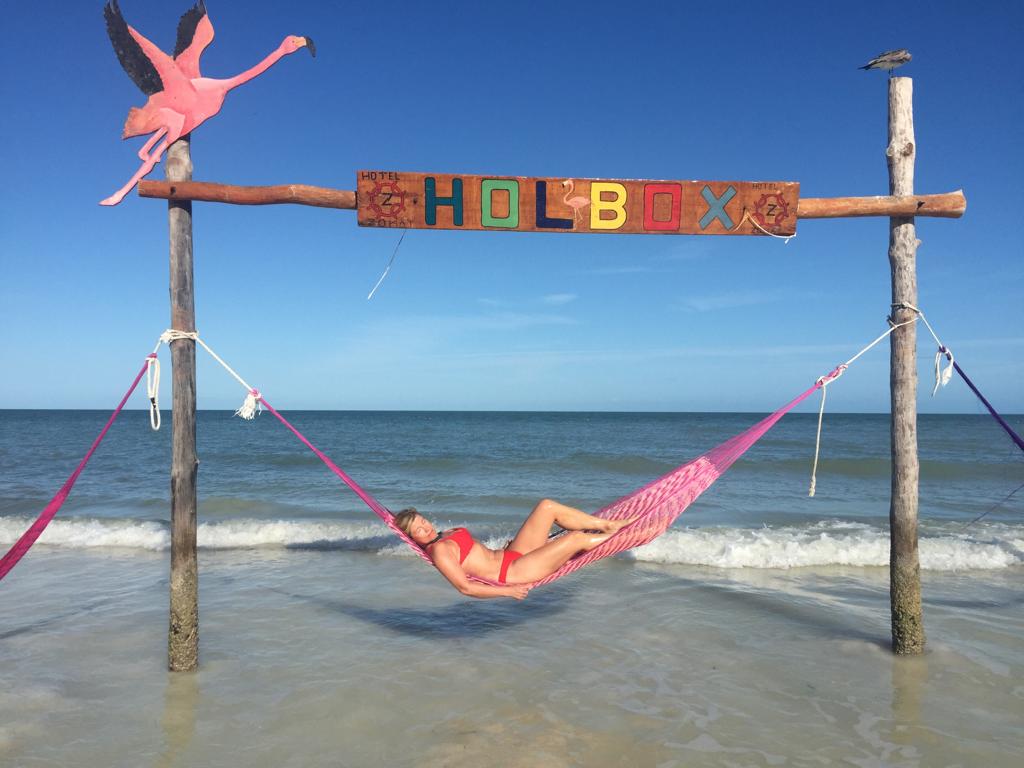Flög till Cancun i Mexiko, sen en två timmars shuttle-tur till Chiquila där vi precis hann till sista färjan över till Holbox. Nu var klocka sju på kvällen och vi tog golfbil-taxi till Holbox Dream Beach Front Hotel, och fick veta att hotellet var överbokat och vi hade inget rum första natten. Istället var vi bokade den natten i ett hotell intill och blev skjutsade dit. Frukost ingår inte i vår bokning men vi bjöds på frukosten nästa morgon.