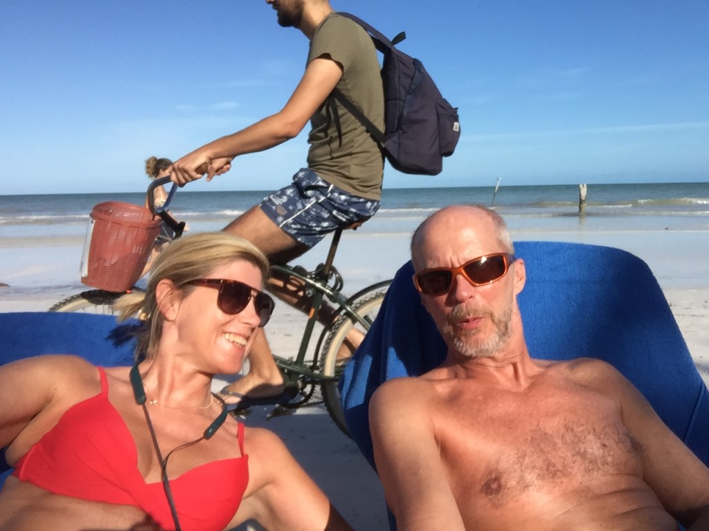 Tulum är fantastiskt fint. Hit fick vi tips av en som varit här tidigare. Tulum ligger ungefär en timme söder om det mer turistiga Playa del Carmen. Tulum bjuder på avslappnad atmosfär, men här finns också mycket att välja på när det gäller mat och dryck samt sevärdheter och stränder. Vi bor centralt i pueblon, så inte vid havet. Men det känns som att vi inte behöver stranden så nära. Vi hyr cyklar och cyklar dit vi ska… eller hoppar in i colectivos.