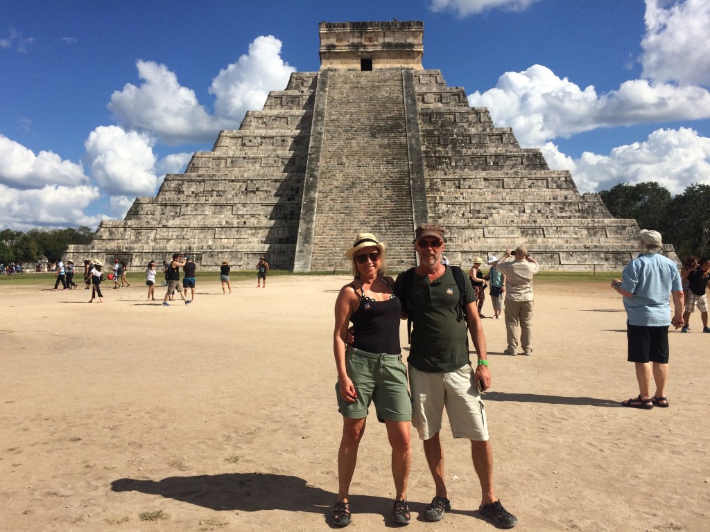 Chitzen Itza bakom Andrew och Angela.