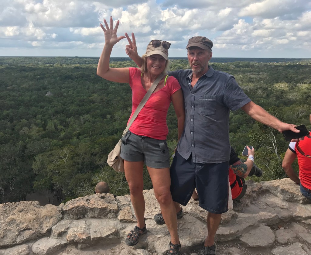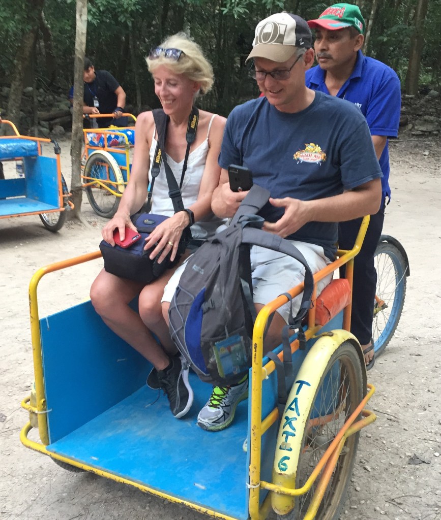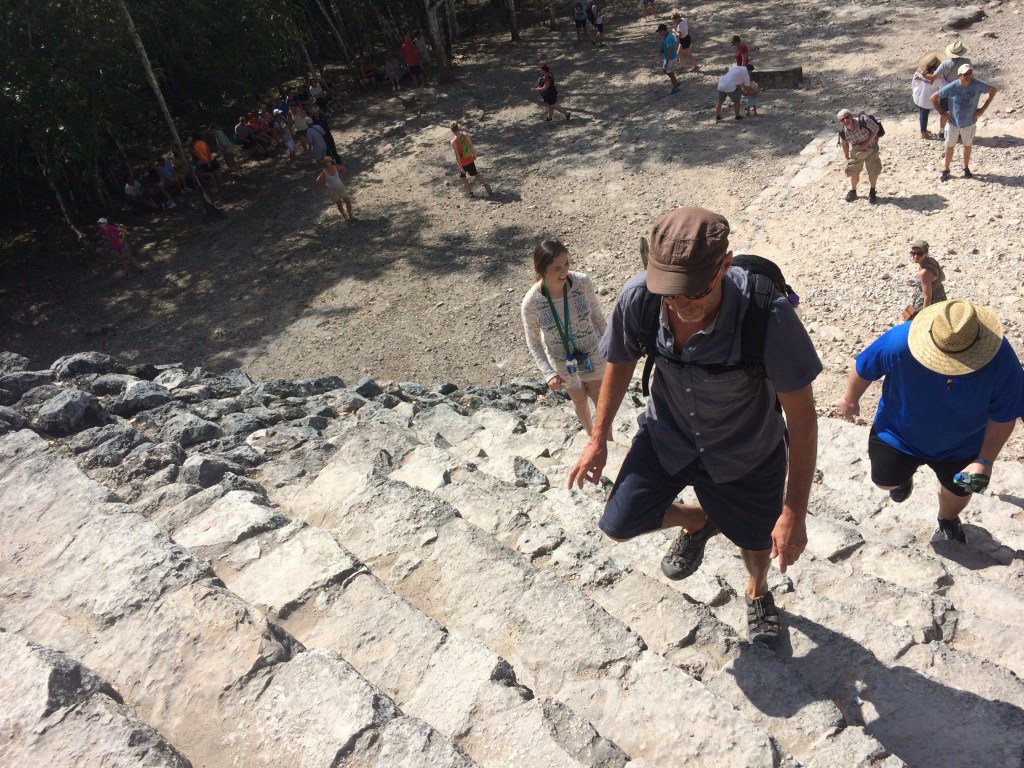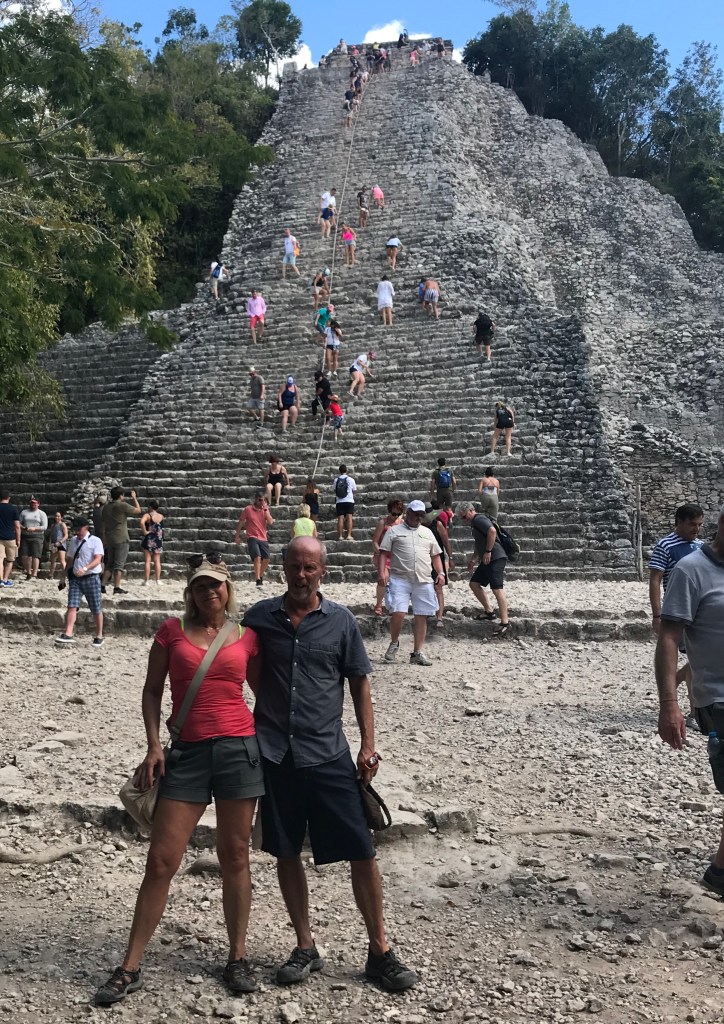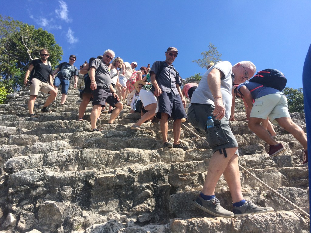 Vilken härlig dag! Åkte på morgon med Angela och Andrew till historiska Maya-staden Coba, ca 48 km inåt landet på östra Yacatánhalvön, där vi anlitade en guide som var riktigt bra. Klättrade upp till toppen av Coba-pyramiden och tog sen vi taxi till Multin-Ha cenote, ca 30 meter ner för spiraltrappor till en underjordisk grotta som var helt fantastisk och där vi var helt för oss själv. Sen åkte vi till Tamcach-ha cenoten där jag och Angela hoppade från de höga plattformarna ner i det mörka vattnet. Taxi tillbaka till Tulum för en god och sjukt billig taco-lunch, taxi till playan för sol och bad och en mycket sen middag… och några drinkar.