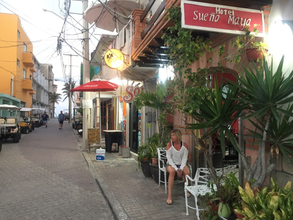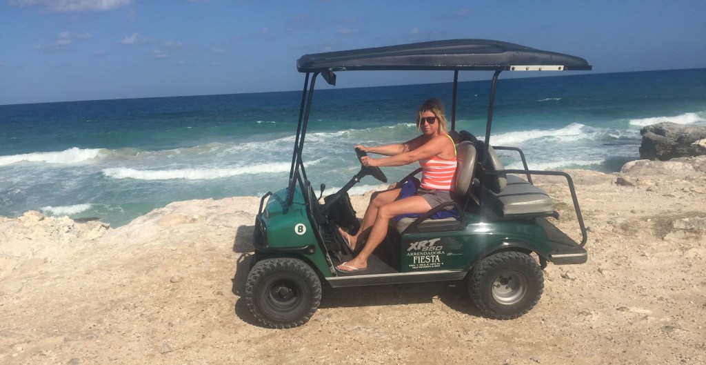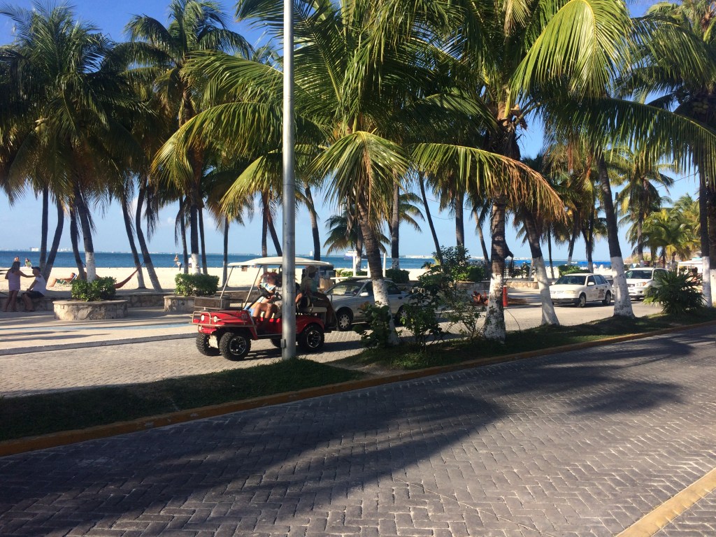 Första känslan av den lilla ön var att den var väldigt turistig, men ön kändes något bättre efter ett tag. Dock slår den inte alls Holbox och Tulum. Vi hyrde en golfbil för en dag. Ön är så liten att vi körde runt den med golfbilen på en timme. Lite svårt med trafiken inne i centrum eftersom många vägar var enkelriktade och det var svårt att se åt viket håll man skulle köra.